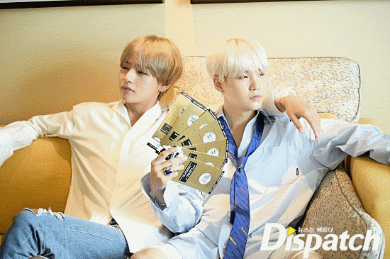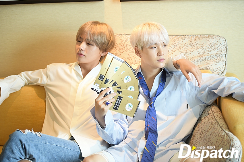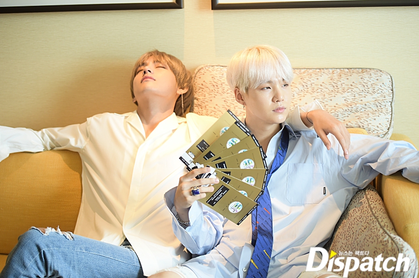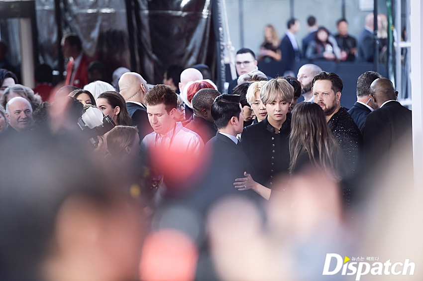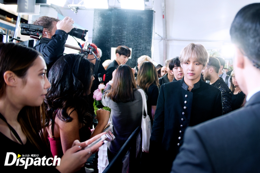 V and Suga were the first to have their makeup done for the exciting night. There was a noticeable change in their posture from when they first walked the Billboards, to their debut at the AMAs. They seem more relaxed.
