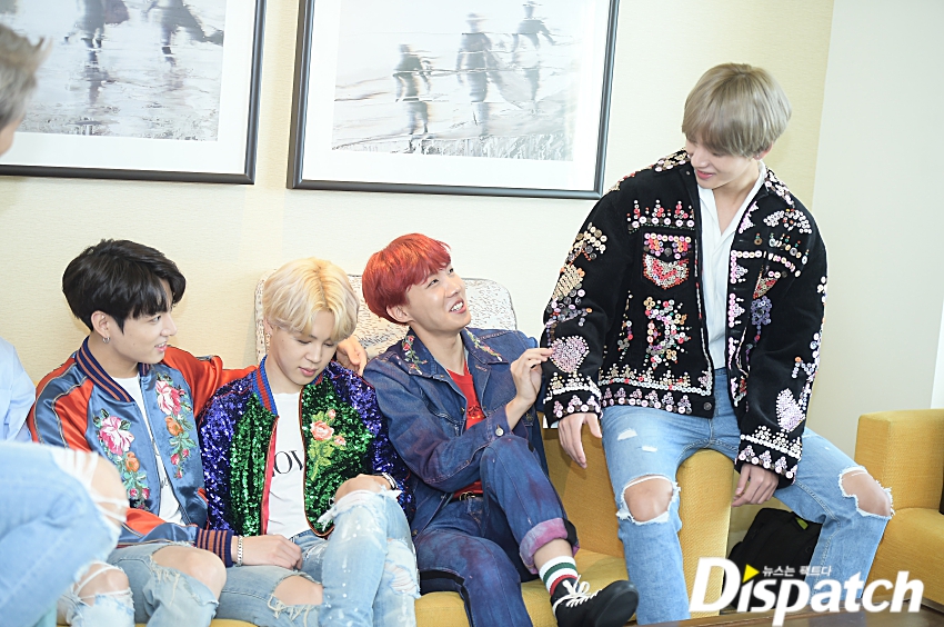 We visited BTS at their sweet room located in the J Hotel. The pictures were taken right before they walked the red carpet!