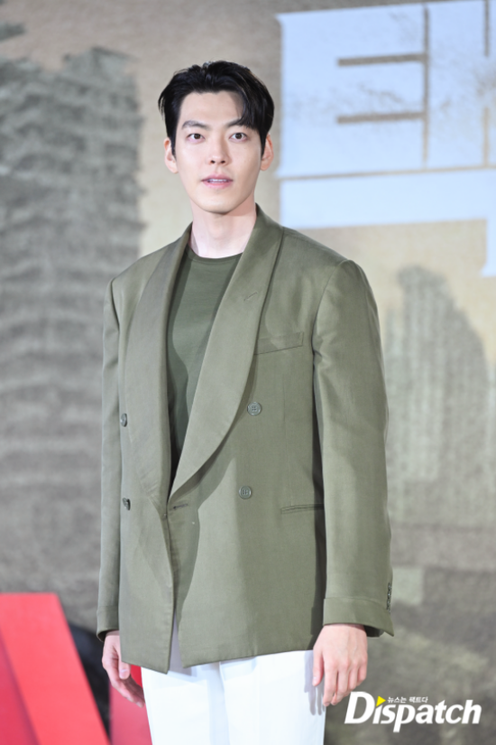 Kim Woo-bin dressed up in a khaki colour blazer and white pants. His good looks and tall height caught the eye.