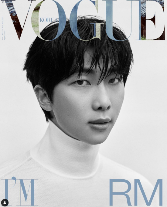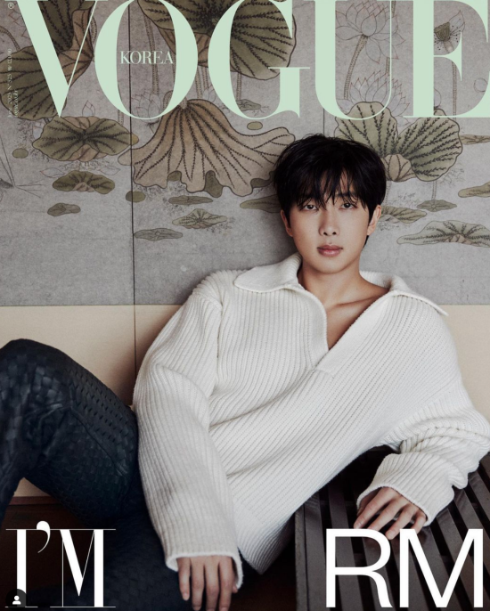 The released photo shows the cover of Vogue Korea. RM in the photoshoot catches the eye by showing off his overwhelming atmosphere and unrivaled charm.