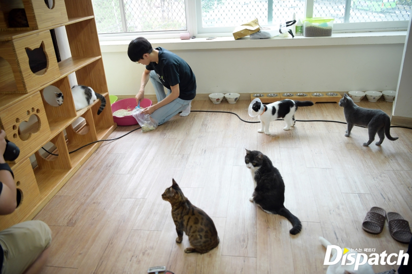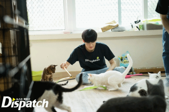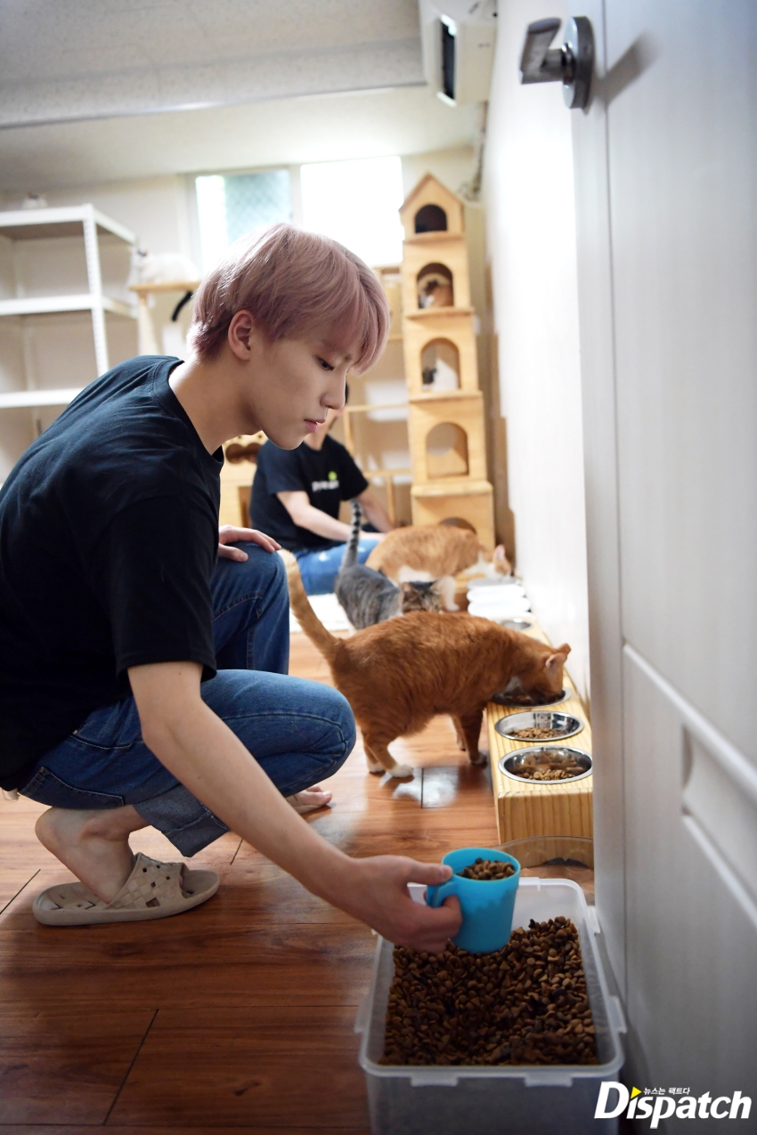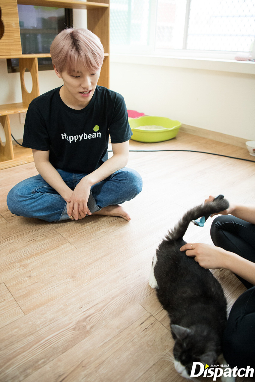 "Wonwoo is extra gentle with the cats. You can feel the love he has for the cats through the brush of his fingers." (Shelter staff)