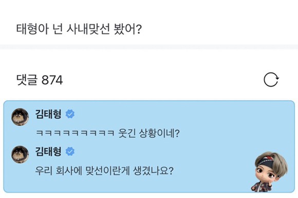 V's answer to a fan's comment was uploaded to an online community board on April 6th. The comment went viral for the member's oblivious answer.