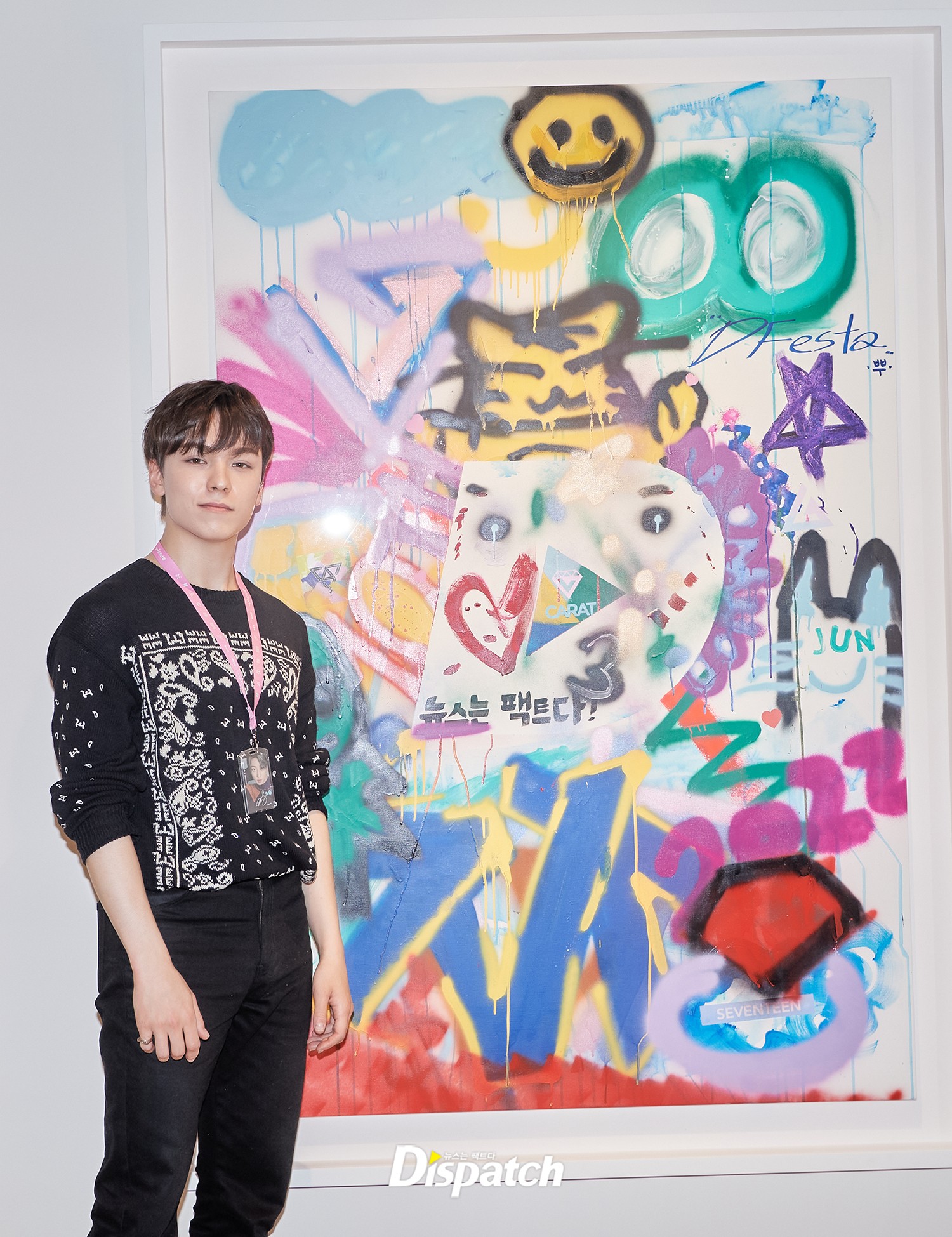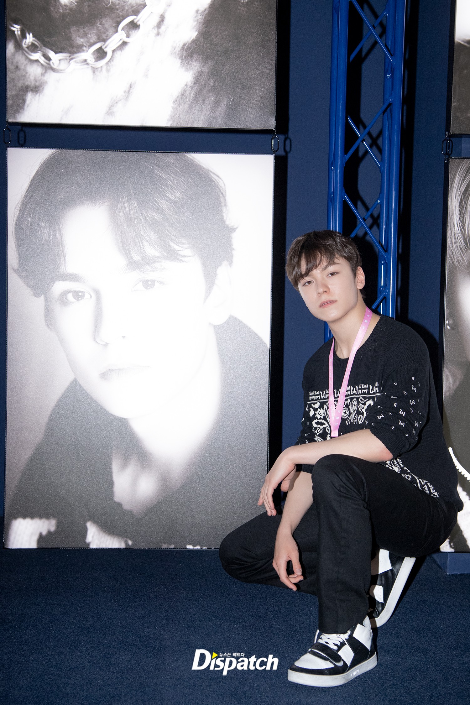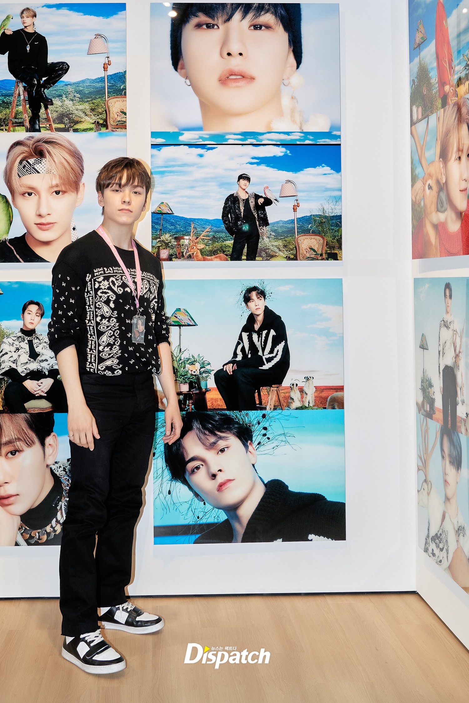 Seventeen's Vernon attended the event to watch the videos and see his pictures on the wall.