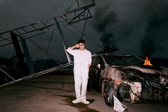J-Hope was seen making direct eye contact with the camera, standing next to a burning car. As if he was a mechanic fixing the car, he was dressed in a white jumpsuit, with casual accessories to add a sense of personal touch.