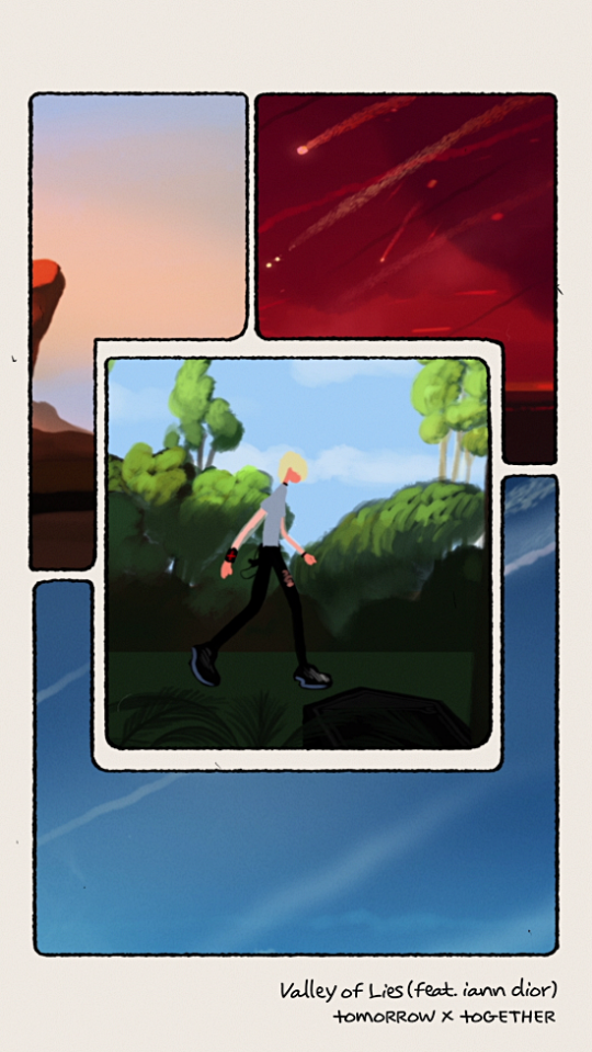 On July 19th, Big Hit Music released a motion poster for the collaboration song 'Valley of Lies' by Tomorrow X Together (TXT) and Iann Dior.