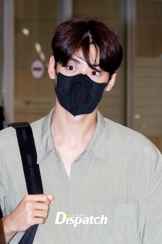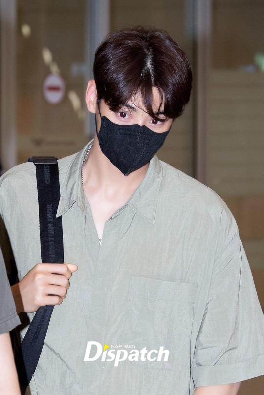 Astro's member Cha Eun-Woo arrived at Incheon International Airport this morning flying in from Jakarta, Indonesia.