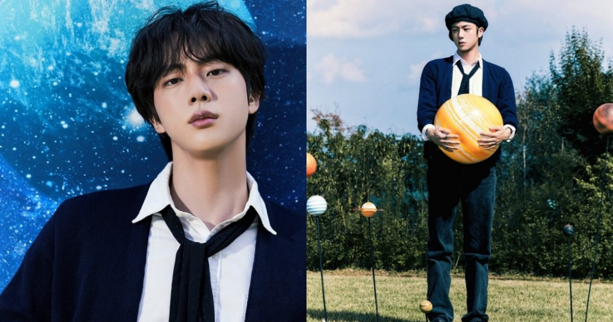 Jin captured the hearts of global fans with his perfect visuals, some set against star filled blue skies, and some set in a green field with planet props.