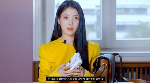 IU revealed a card slot, ear plugs and tweezers. However the surprisingly interesting item that caught the eye was ‘cod roe seaweed.’ IU said, "Lee Joo-Young came to my concert and gave me two boxes of this cod roe seaweed as a gift. As soon as I tried a packet I got addicted to it that now it is my favourite snack.” IU laughed and added, “it is not too salty and tastes even better when you wrap it around rice!”