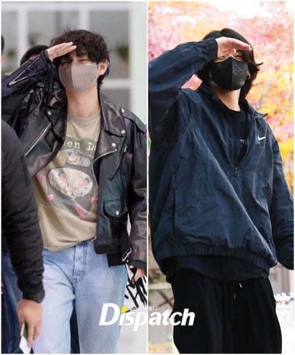 On November 15th, BTS' V and Jungkook were spotted at the airport before departure.