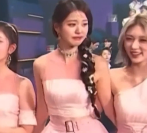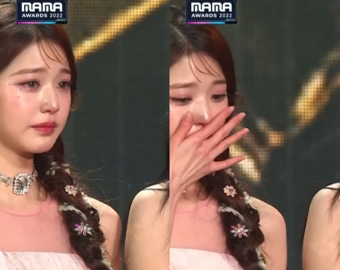 On stage, Ahn Yu-Jin first made her speech and cameras showed Jang Won-Young trying to calm down her emotions. But Jang Won-Young seemed overwhelmed as she continued to try and hold back tears.