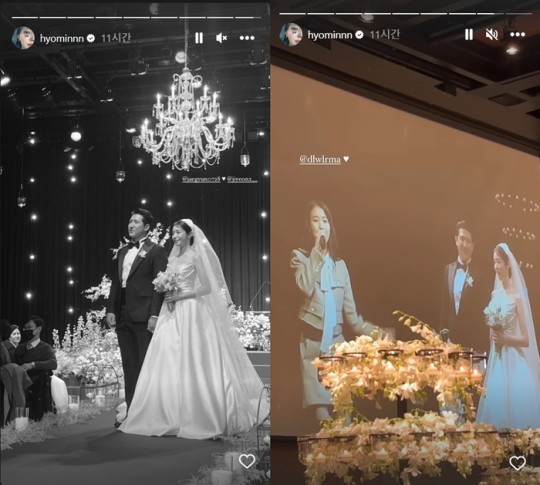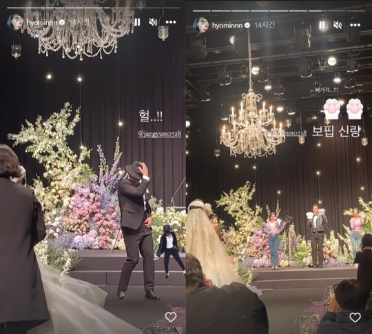 Hyomin also uploaded a picture of the groom dancing to T-ara's popular song 'Bo Peep Bo Peep' and Michael Jackson's song. Member Qri also revealed a picture of the wedding photos which decorated the reception hall with the comment, “congratulations to my beautiful sister.”