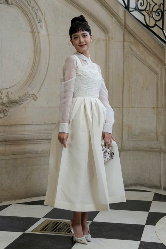 On January 23rd, Blackpink’s Jisoo attended Dior's 2023 SS Haute Couture fashion show held at the Rodin Museum in Paris, France. On this day, Jisoo was dressed in elegant white couture, styled with bangs and a high bun, reminiscing Audrey Hepburn.