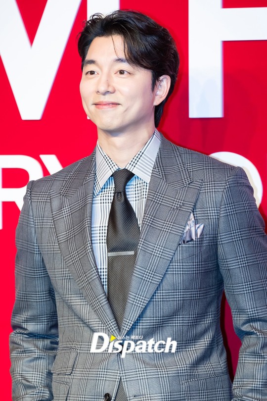 Hwang In-Youp was dressed in a chic leather black jacket matched with black pants. Gong Yoo was dressed in a dandy look, wearing a clean-cut checkered suit and black tie.