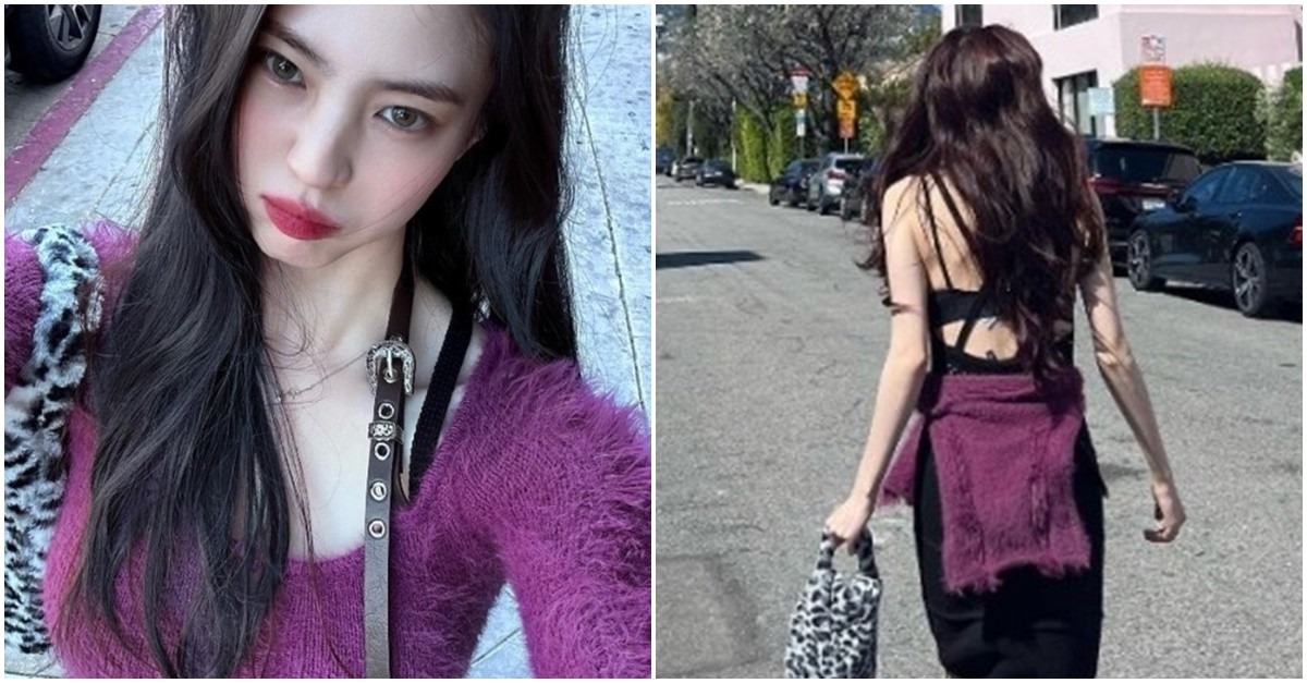 Actress Han So-Hee uploaded photos of herself dressed in a knitted black midi-dress, matched with a fluffy purple sweater and leopard print bag. In her selfie, the actress was seen to be wearing make-up with emphasis on her cat eyes with a smokey touch.