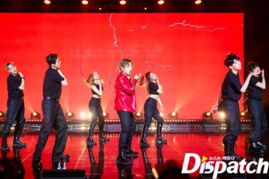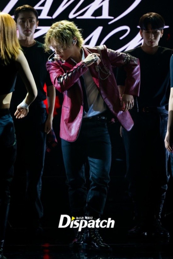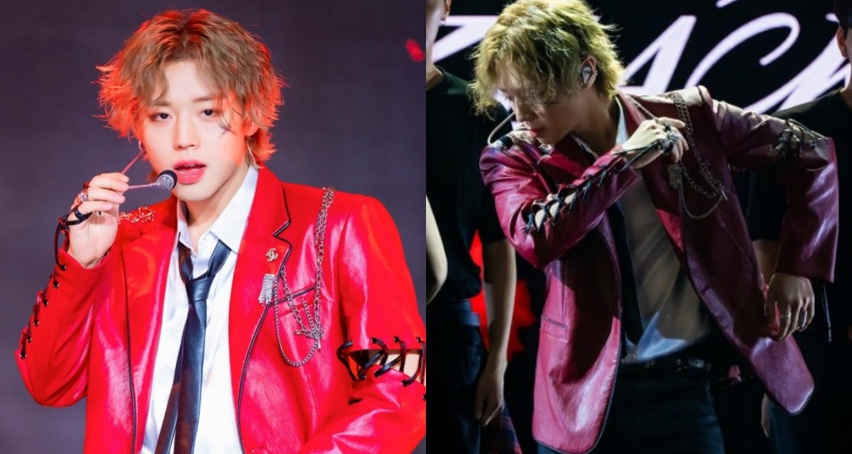 Park Ji-hoon created a chic atmosphere with a red leather jacket and black pants. Handsome visuals stood out.
