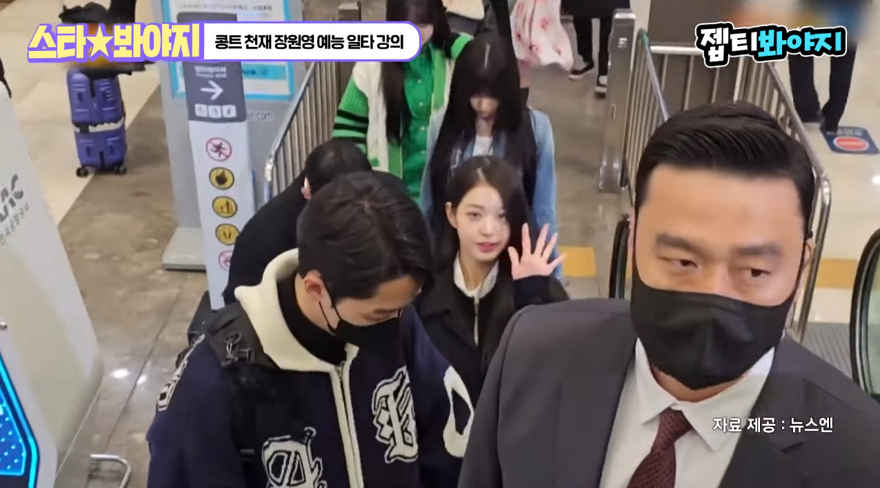 In the video, Jang Won-Young was captured striking cute poses such as making a heart with her hand and holding a ‘V’ pose. At one point, a bodyguard looked back at her and a startled Jang Won-Young avoided eye contact immediately. One fan commented by saying, “she looks like a daughter who got caught making a TikTok video by her Dad.”
