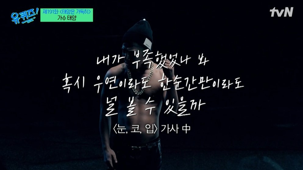 On April 26th, Taeyang featured as a guest on tvN’s ‘You Quiz on the Block.’ On this day, Taeyang talked about how he met his now wife actress Min Hyorin. Taeyang said, “I first met her on the set of filming for my music video ‘1AM.’ I asked her with short notice to star in my music video and she gratefully said okay.”