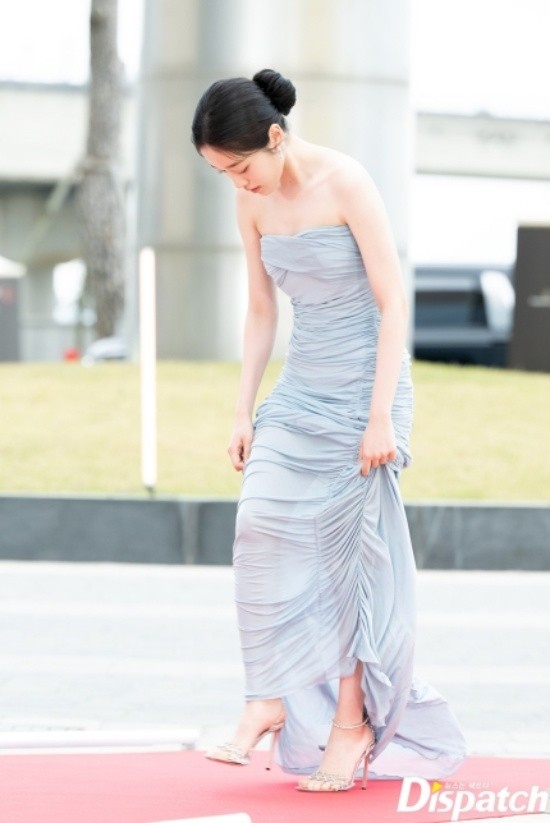 Roh Yoon-seo looked very nervous. But she didn't lose her smile throughout the photo time.