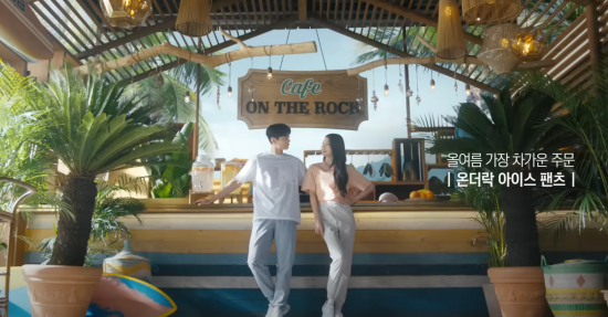 The advertisement of the two was filmed against the backdrop of a cafe on a hot summer day. The concept of Park Bo-gum ordering the coolest one. Jang Won-young, who appeared as a working at cafe, put out pants that looked like ice, not drinks. Jang Won-young emphasized with a playful expression that the coolest thing Park Bo-gum ordered was pants.