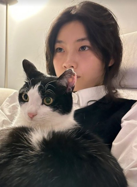 In the posts, Jung Ho-Yeon is seen holding Lee Dong-Hwi's pet cat named Gallo. Gallo also appears comfortable in Jung Ho-Yeon's arms, gazing into somewhere with a relaxed posture.