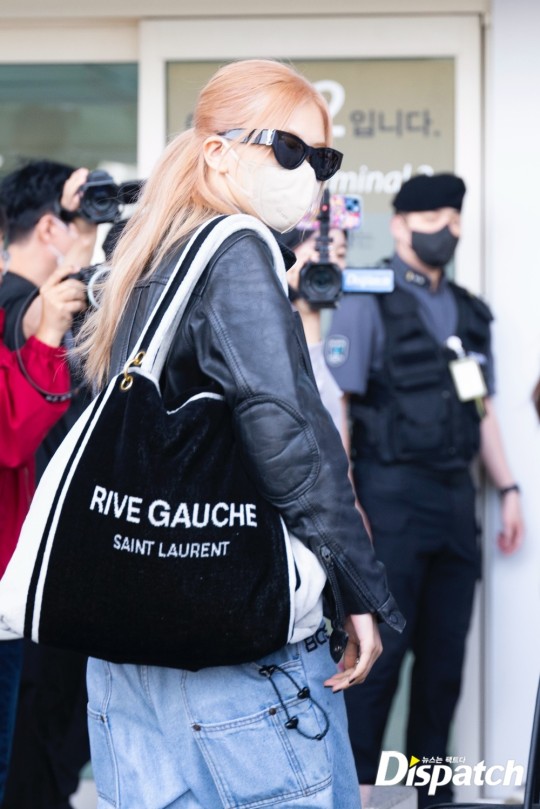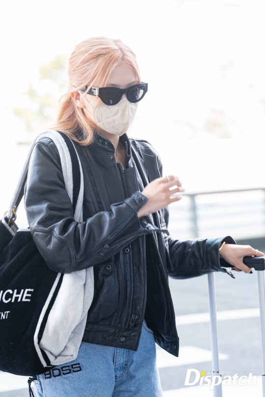 On May 23rd, Blackpink’s Rose was spotted at Incheon International airport before departure. Rose was dressed in a leather biker jacket, matched with baggy denim jeans to create a chic and sporty look. Check out the photos below!