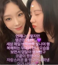 Seohyun, who attended the concert a day before, also uploaded a selfie with Taeyeon on her own account.