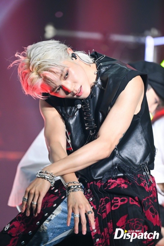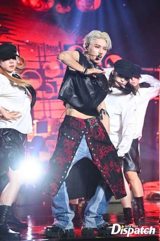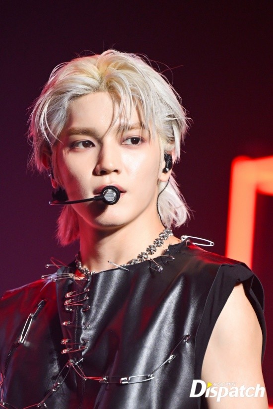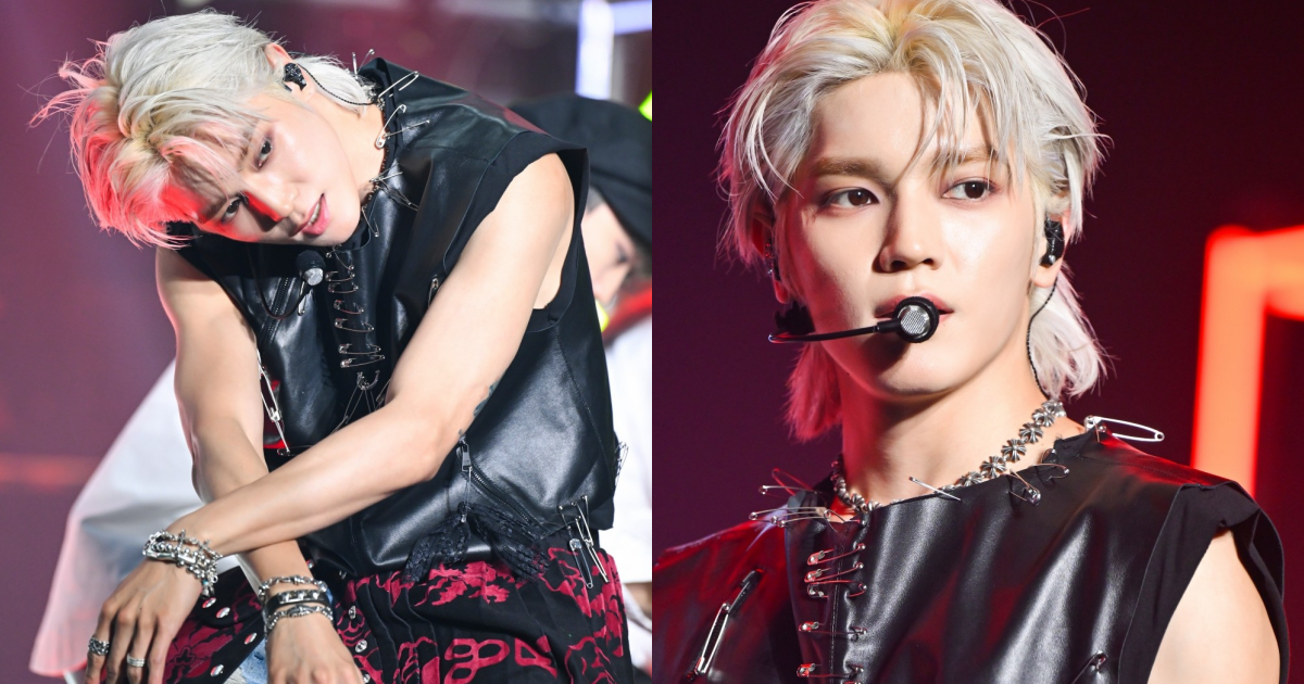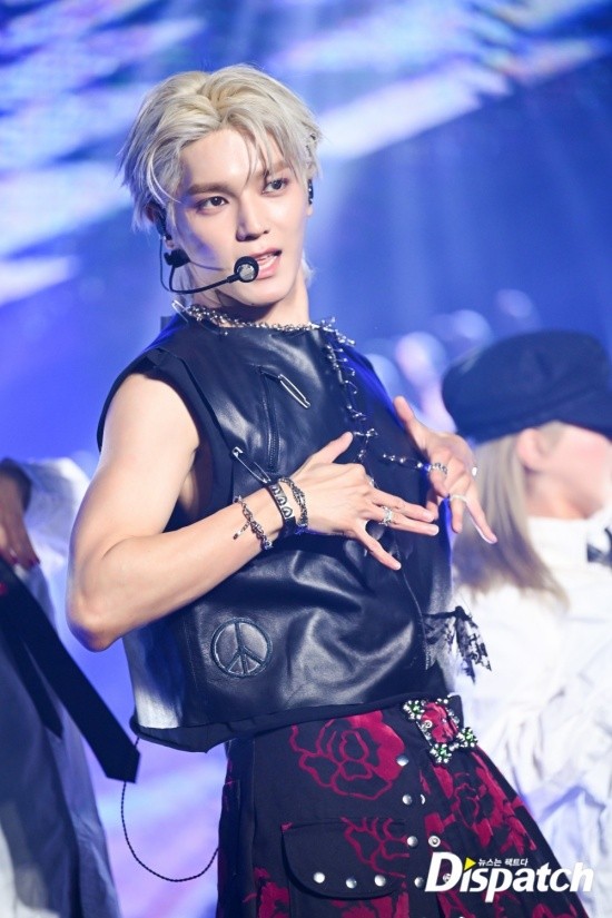 Taeyong styled himself with a leather vest and ripped jeans. The funky look stood out.
