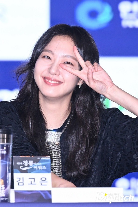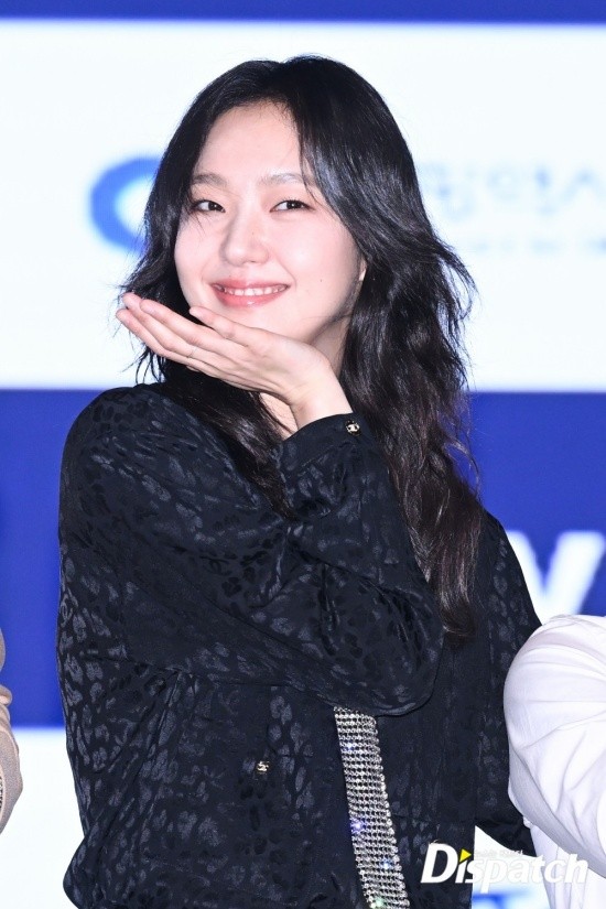 Kim Go-eun looked chic in a black suit with a fancy crystal tie.