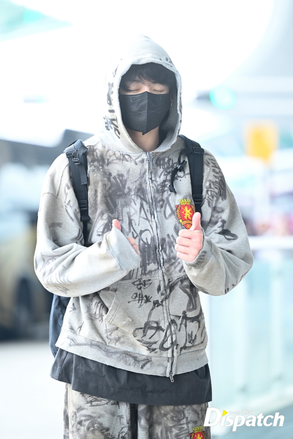 On July 12th, BTS' Jungkook waved for cameras at Incheon International airport before departing for New York, USA.