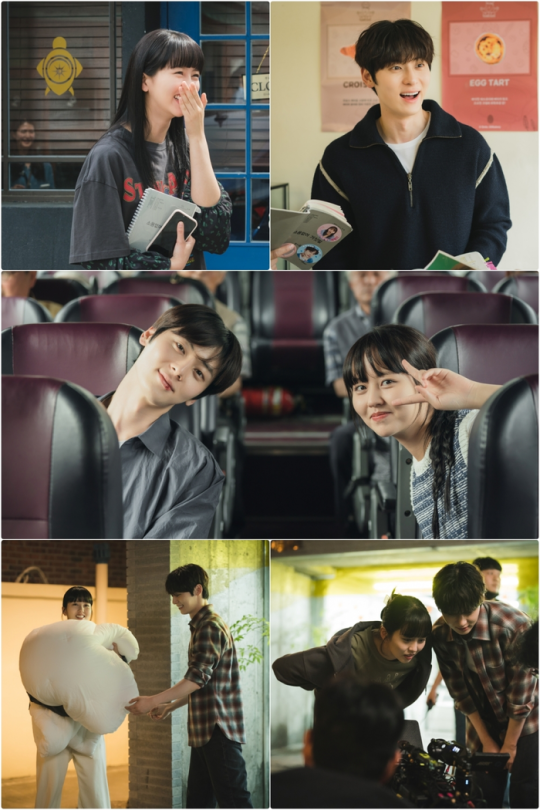 Above all, the chemistry between Kim So-hyun and Hwang Min-hyun, who will become each other's saviors in a difficult situation, is receiving heated attention in the romantic comedy of 'Useless Lies'. The unveiled behind-the-scenes images of Kim So-hyun and Hwang Min-hyun exude even more excitement. While Mok Sol-hee, who is cynical about everything because of her ability to hear lies, Kim So-hyun brightens up the filming set with her exceptionally refreshing smile. Hwang Min-hyun also consistently brings positive energy to the drama as the official mood maker. In particular, the colorful post-it notes stuck to the script in his hands show his extraordinary passion for the work.
