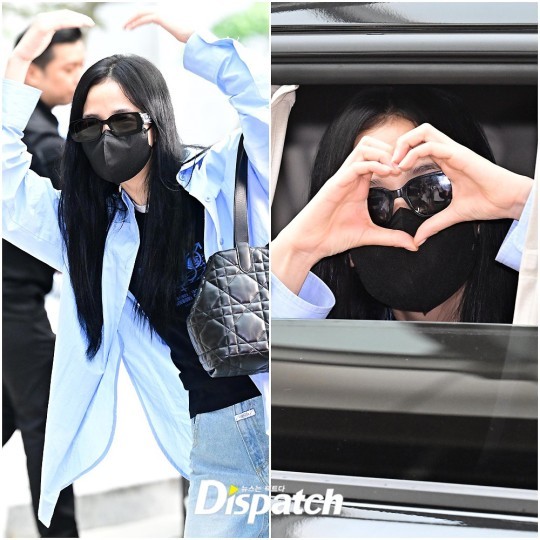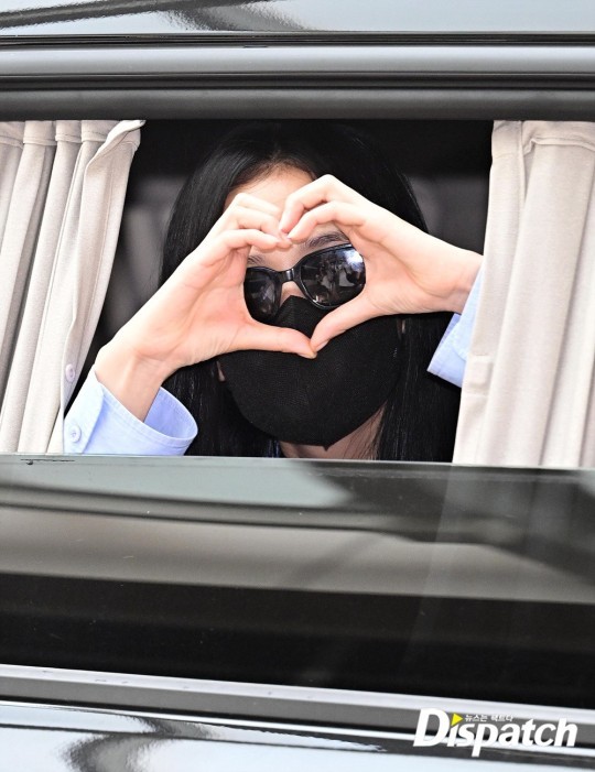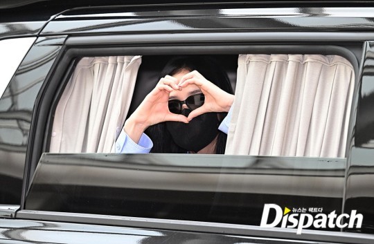 Jisoo made different heart shapes for fans. She looked lovely even in a mask.
