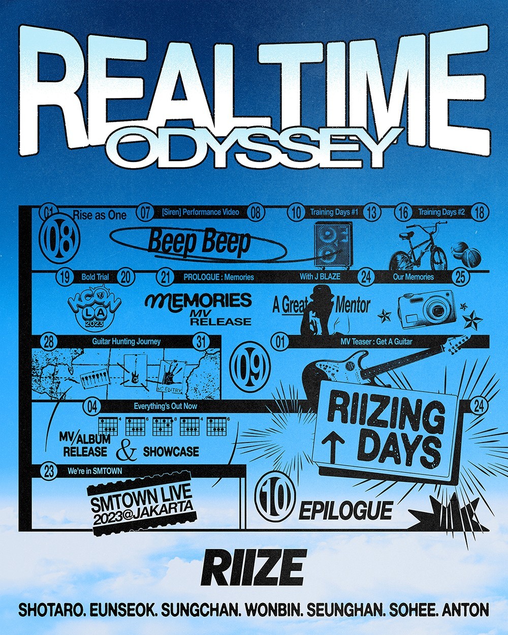 RIIZE also revealed the timeline for "Realtime Odyssey," which details when various contents will be released.