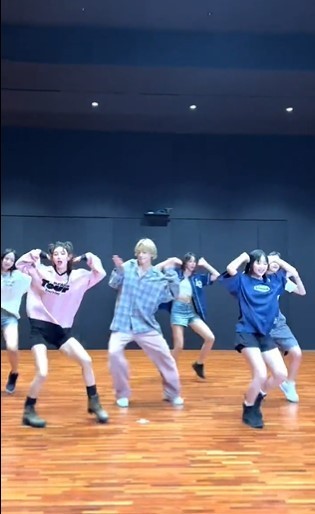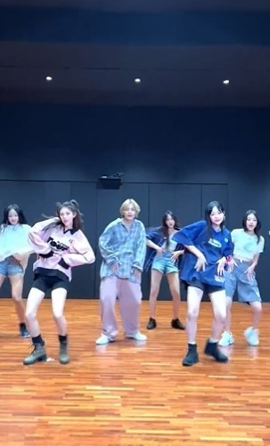 V was seen matching steps with the NewJeans members effortlessly to their debut album's title song 'Hype Boy', flaunting his moves.