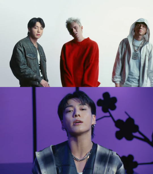 In the smooth hip-hop track "TOO MUCH," each artist bops along to a snippet of the song's funky instrumental, while Jung Kook sings the chorus with his soulful vocals.