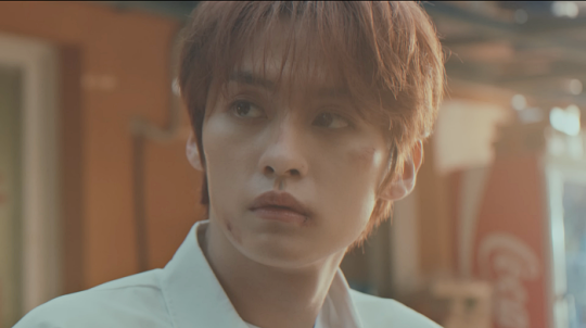 In a school uniform, Lee Know appeared with scars all over his face. He had a conversation with Felix about his dream of becoming an actor.