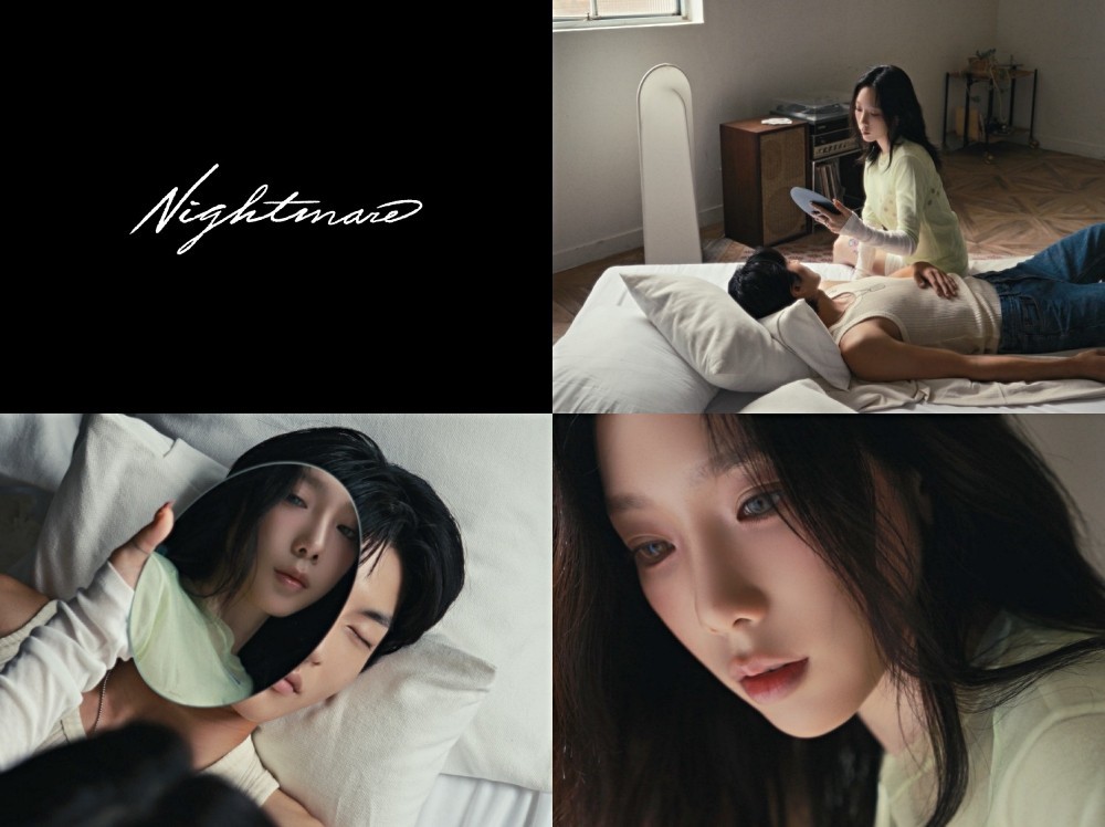 The teaser for 'Nightmare' features a snippet from the song and shows Taeyeon gazing at herself while holding a mirror over the face of a sleeping man.