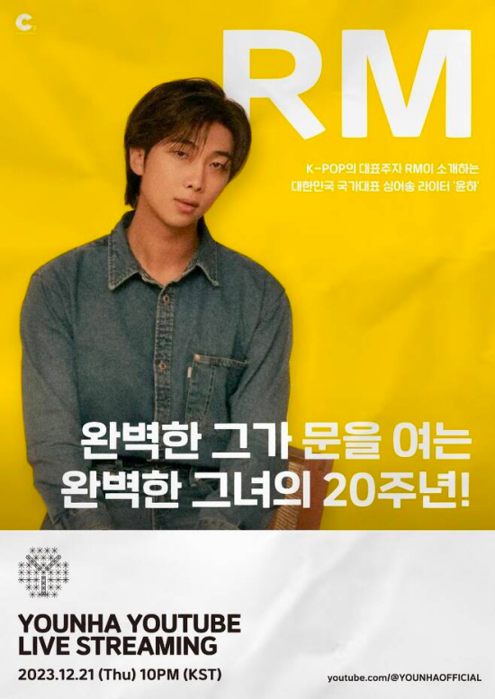 On the 8th at midnight, Younha revealed the first presenter of the 20th-anniversary unpacking event 'Y' through official SNS. The poster revealed the first presenter as RM.