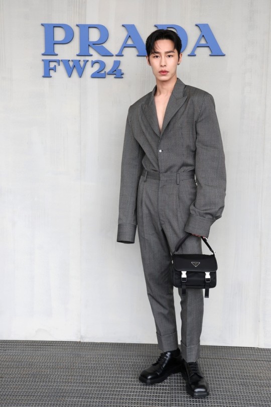 Karina and Lee Jae-Wook attended Prada's 2024 fall/winter men's collection fashion show held in Milan, Italy on the 14th (local time).