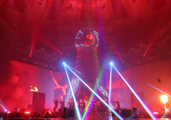 In the center of the stage, a huge 16-meter tower of light was shining. They performed different versions of themselves revolving around the tower.m