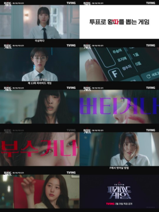 The teaser trailer released simultaneously raises the heart rate with the appearance of transfer student Seong Su-ji stepping into the cruel world. Once a month, on the last Thursday, Baekyeon High School 2nd Grade Class 5 chooses a bullying target through voting via the app. Although students call it the 'Pyramid Game', Seong Su-ji soon realizes that this system is a means to bully and play with the target legally.