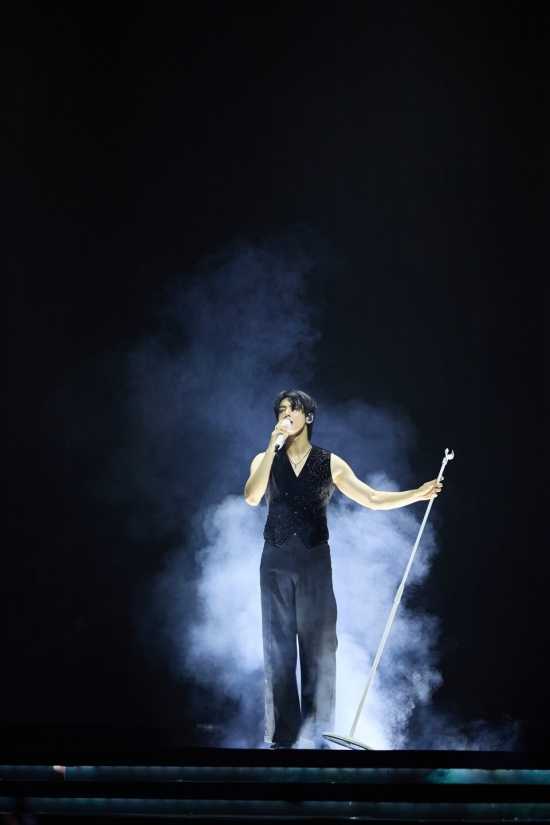 His powerful dance line stood out in the medium tempo. He also revealed his firm abs. He exuded fatal charm with rebellious lyrics.