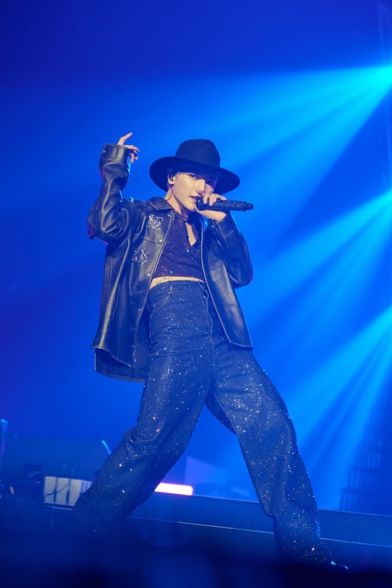 He also put on a runway show on a conveyor belt across the stage. He performed "Moonlight," "Ups&Downs," and "Moon Tour" perfectly.