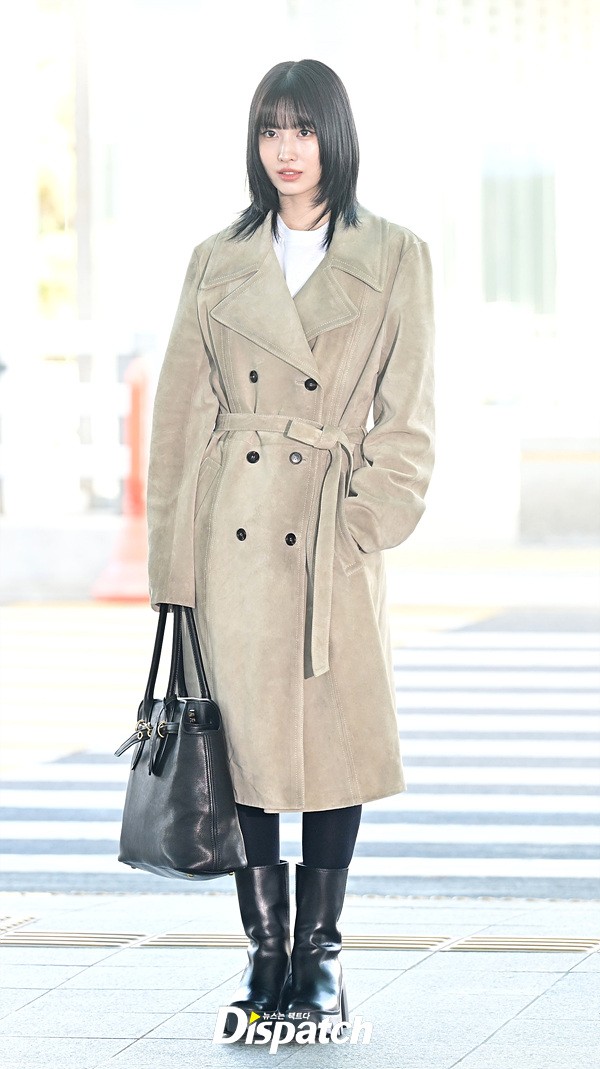Momo completed her elegant airport fashion with a trench coat and big bag. He responded with a heart pose to the fans gathered at the airport.