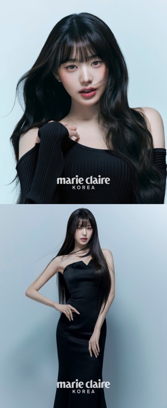 In the pictorial, Jang Won-young showed off her lovely charm with an off-the-shoulder outfit that revealed her beautiful shoulder line and a rich, wavy black hair hairstyle. In another cut, she matched her long straight hair with a black dress and radiated an elegant yet powerful charisma with her alluring styling.