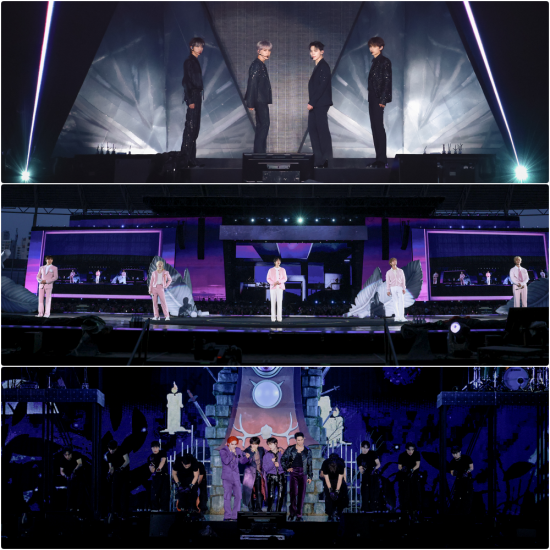 The scale of the concert hall has also grown as it has been upgraded. The members appeared through a flying stage. The opening song was 'Super'. It was magnificently arranged with a live band.