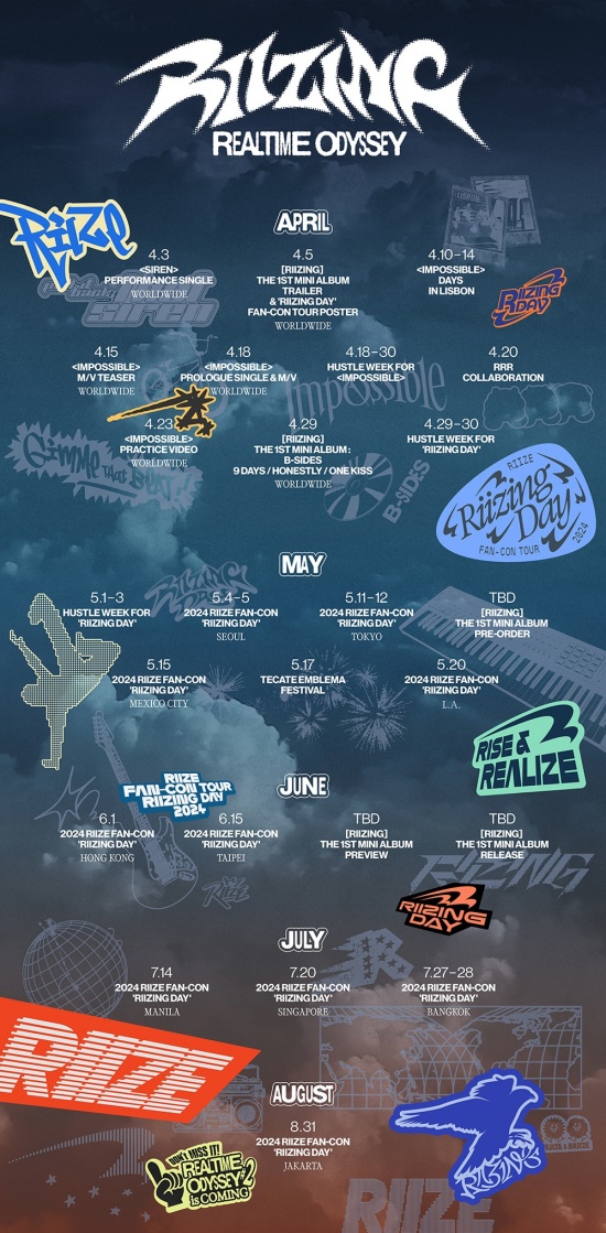 SM Entertainment released RIIZE's main activities and content schedule on its promotion page on the 3rd. Before the comeback, the timeline 'REAL TIME ODYSSEY' was announced.