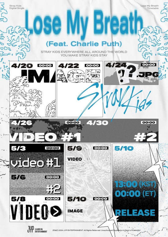 JYP Entertainment posted a timetable image of Stray Kids' new digital single 'Lose My Breath' on its official SNS at 12AM (Korean time) on the 19th.