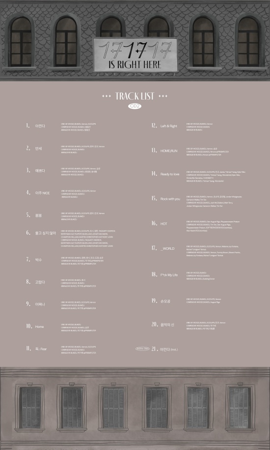 On the 19th, Pledis Entertainment posted the entire tracklist of their album '17 IS RIGHT HERE' on Seventeen's official SNS.