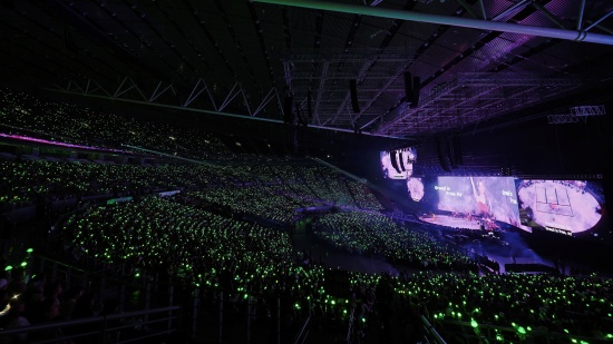 The concert opened with "Holssi," featuring IU performing alongside local child dancers. The packed arena erupted in cheers as she made her entrance, setting the tone for an energetic and enthusiastic evening.