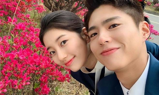 In the released photo, Park Bo-gum and Suzy are standing in front of flowers and posing. The two people attracted attention and aroused admiration even in front of colorful flowers. The sight of the two people facing each other closely caused vicarious excitement in the viewers.